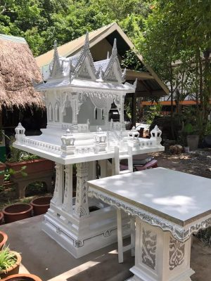 จัดส่งและติดตั้ง ศาลพระพรหม 12″ ทรงดอกบัว ศาลเจ้าที่ทรงดอกบัว พร้อมโต้ะบูชา